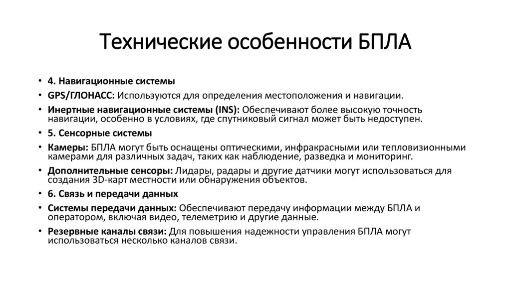 • ТЕХНИЧЕСКИЕ ОСОБЕННОСТИ БПЛА