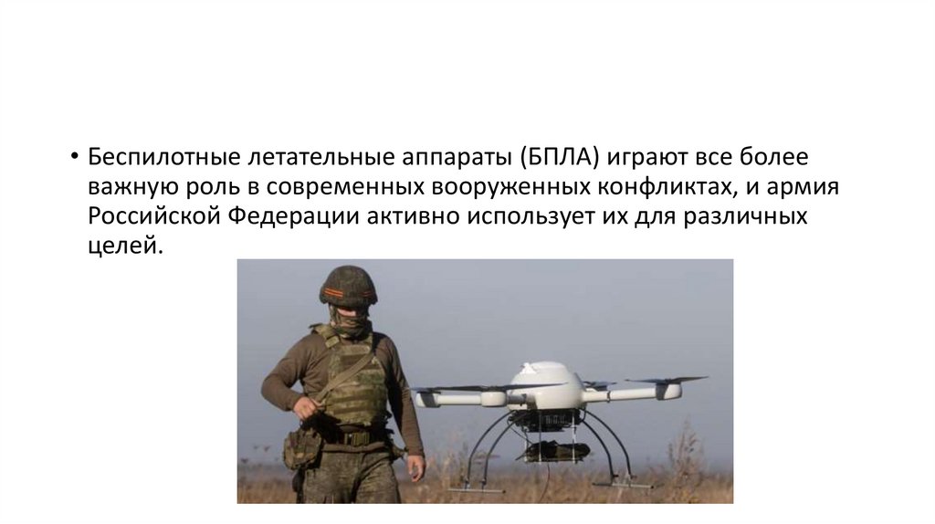 • Беспилотные летательные аппараты (БПЛА) играют все болееважную роль в современных вооруженных конфликтах, и армия