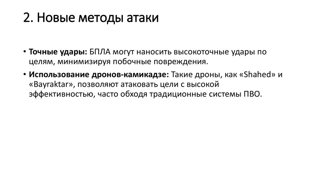 • Беспилотные летательные аппараты (БПЛА) значительноизменили тактику ведения боевых действий в современных