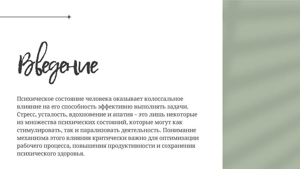 ВведениеПсихическое состояние человека оказывает колоссальное