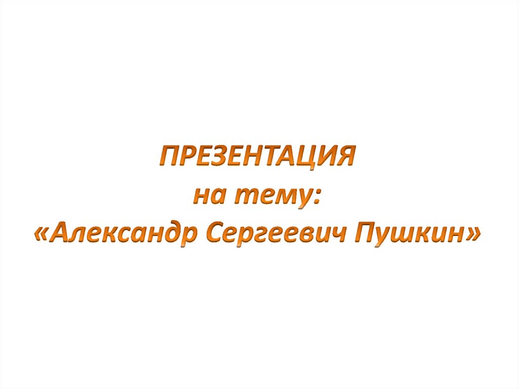 2. ПРЕЗЕНТАЦИЯ на тему: «Александр Сергеевич Пушкин»
