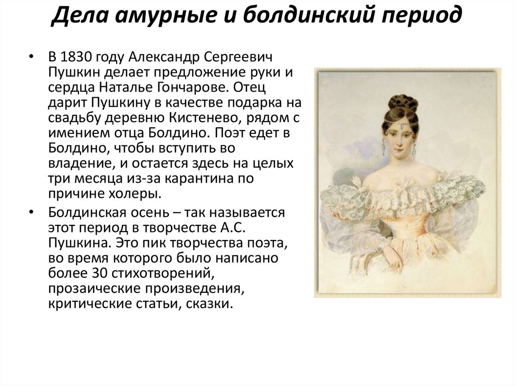 • В 1830 году Александр СергеевичПушкин делает предложение руки и