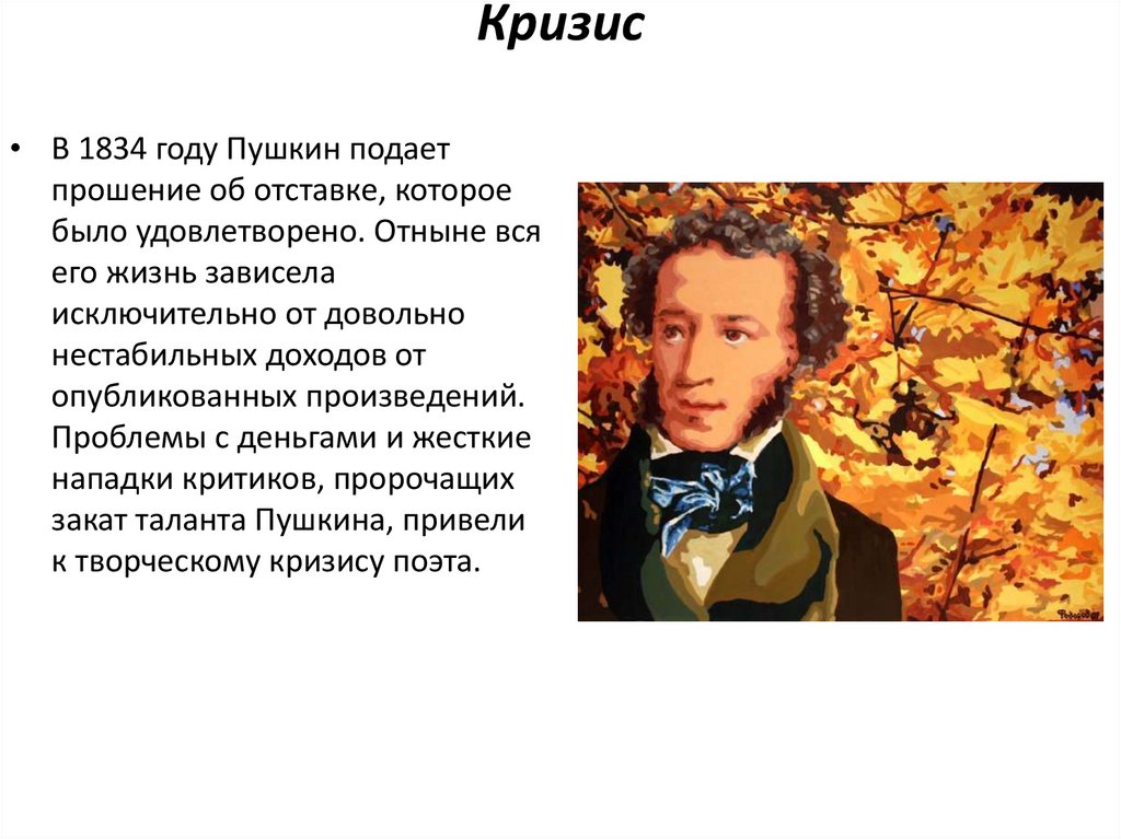 • В 1834 году Пушкин подаетпрошение об отставке, которое