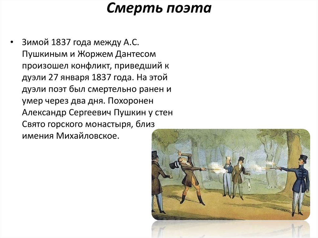 • Зимой 1837 года между А.С.Пушкиным и Жоржем Дантесом