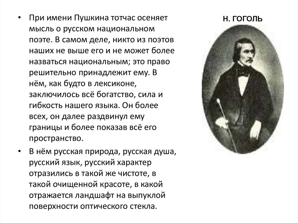 • При имени Пушкина тотчас осеняетмысль о русском национальном