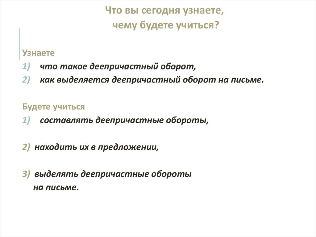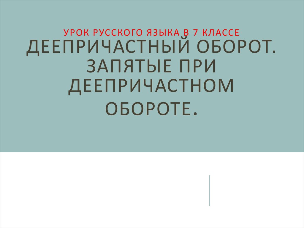 1. Урок русского языка в 7 классе Деепричастный оборот. Запятые при деепричастном обороте.