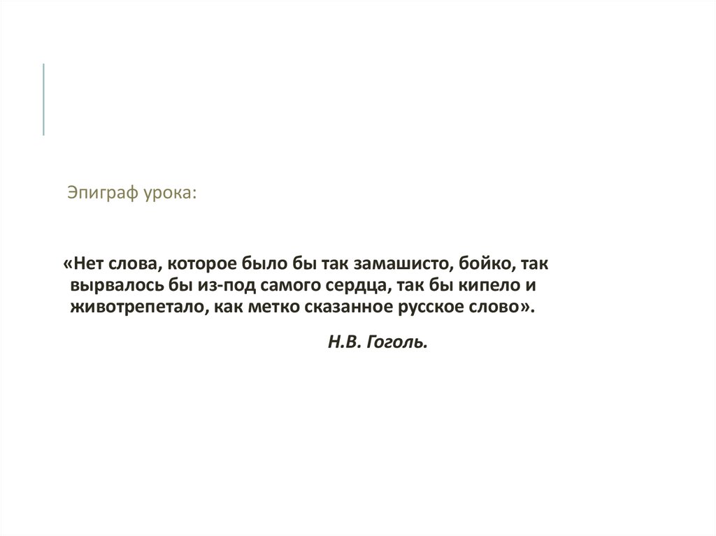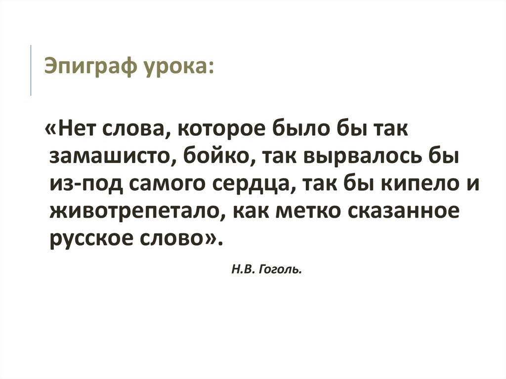 Эпиграф урока:«Нет слова, которое было бы так замашисто, бойко, так