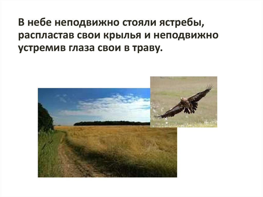 В небе неподвижно стояли ястребы,распластав свои крылья и неподвижно