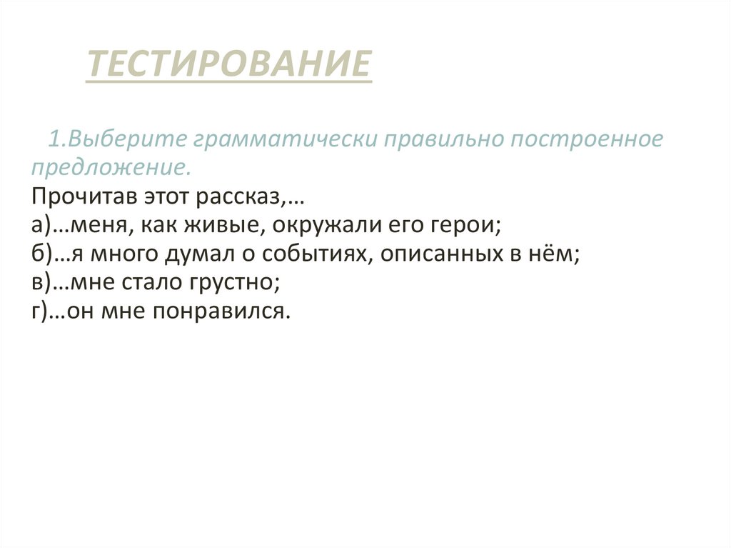 ТЕСТИРОВАНИЕ1.Выберите грамматически правильно построенное