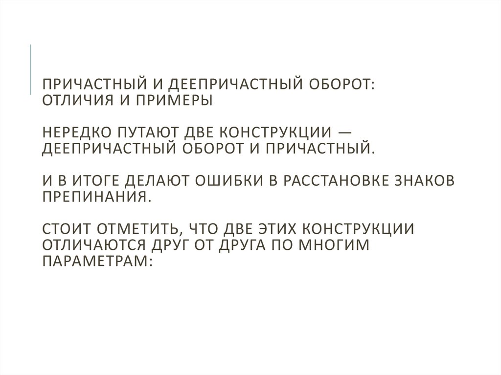 ПРИЧАСТНЫЙ И ДЕЕПРИЧАСТНЫЙ ОБОРОТ:ОТЛИЧИЯ И ПРИМЕРЫ