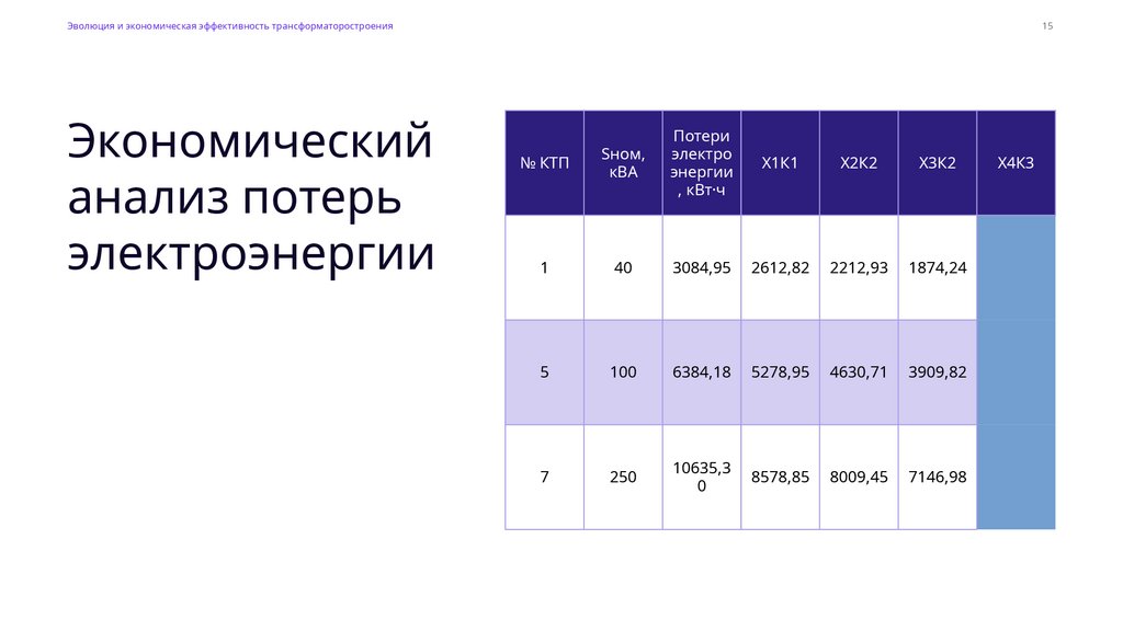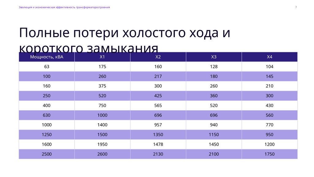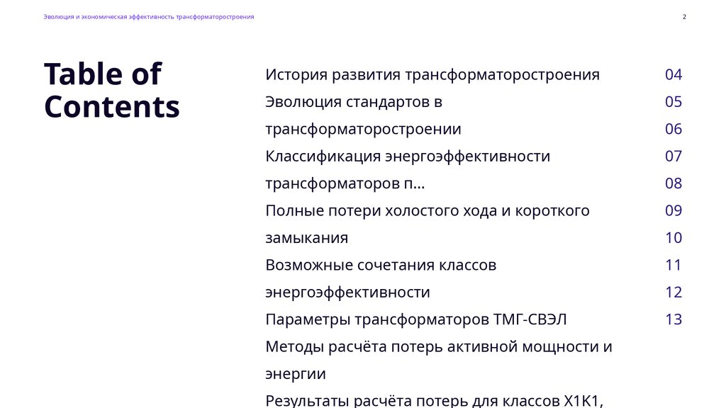Эволюция и экономическая эффективность трансформаторостроенияTable of
