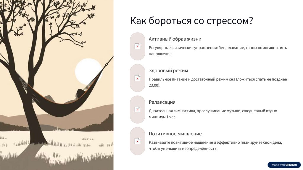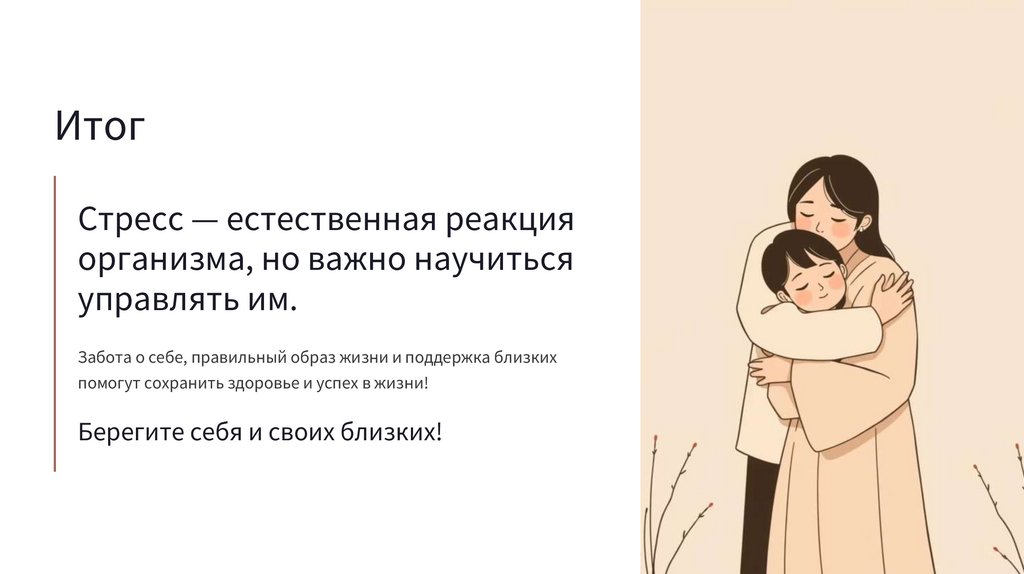 Важно вовремя распознавать и устранять причины стресса, чтобы избежать серьёзных последствий для здоровья.