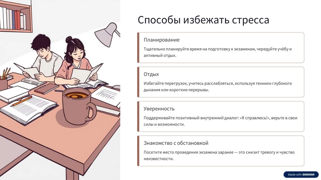 Посетите место проведения экзамена заранее — это снизит тревогу и чувство