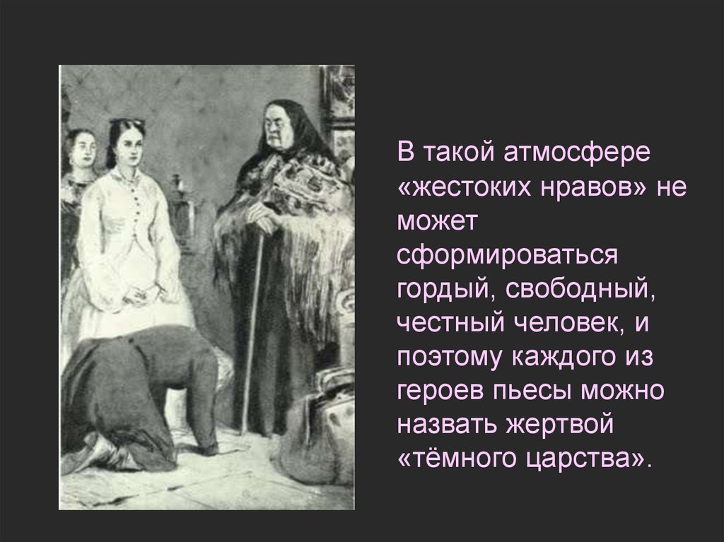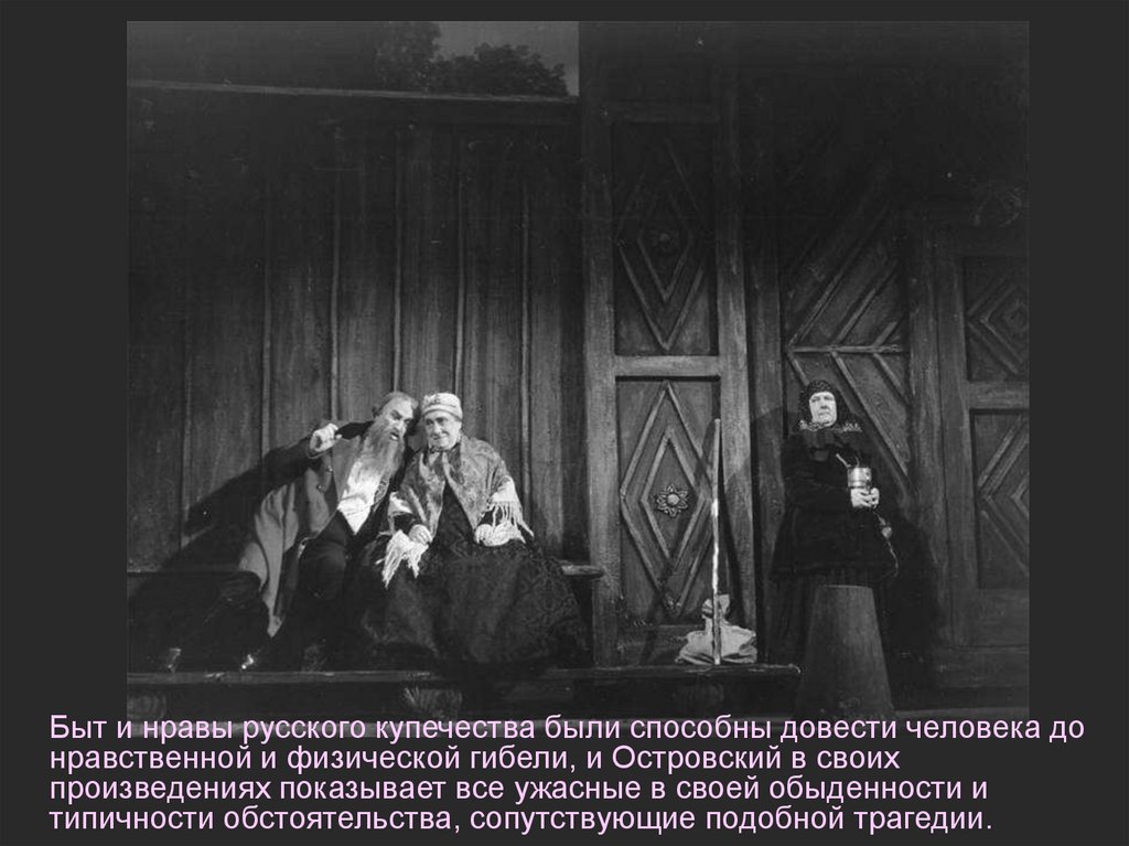 Быт и нравы русского купечества были способны довести человека донравственной и физической гибели, и Островский в своих