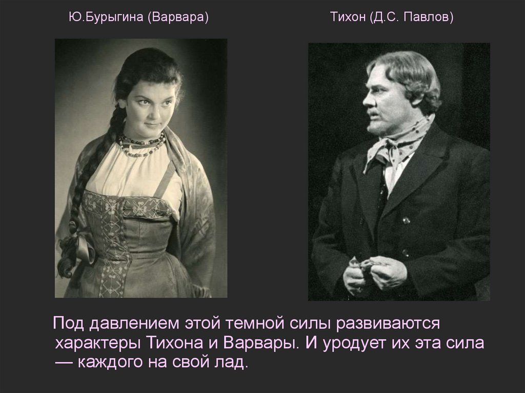 характеры Тихона и Варвары. И уродует их эта сила