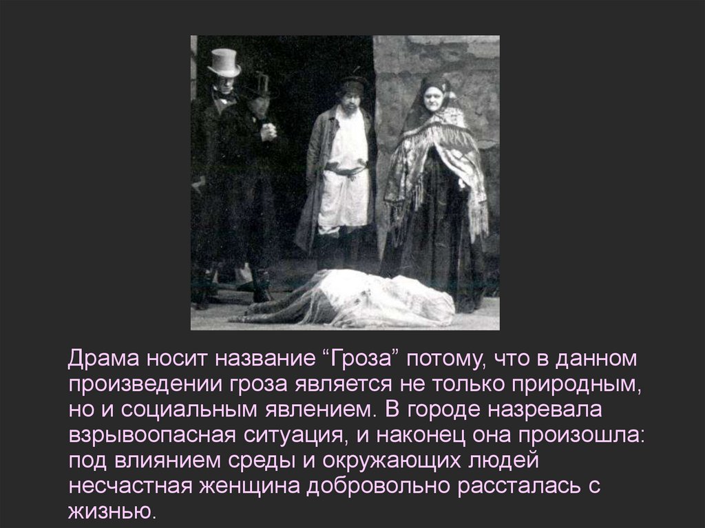 Драма носит название “Гроза” потому, что в данномпроизведении гроза является не только природным,
