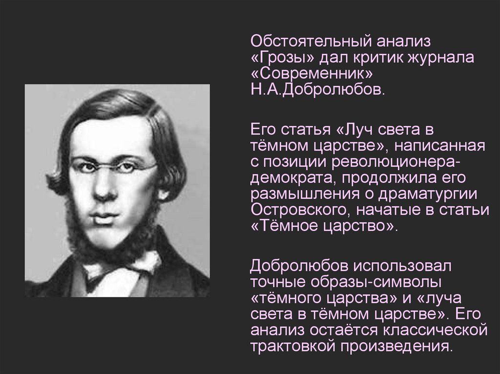 *Добролюбов «Луч света в темном царстве»;