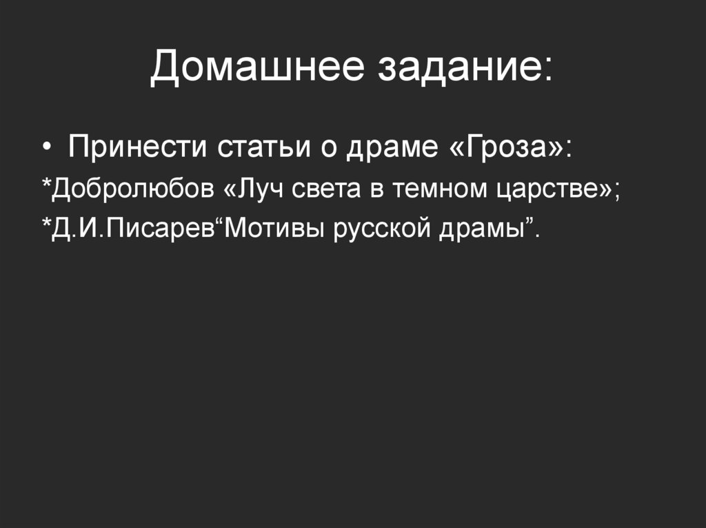 Домашнее задание:• Принести статьи о драме «Гроза»: