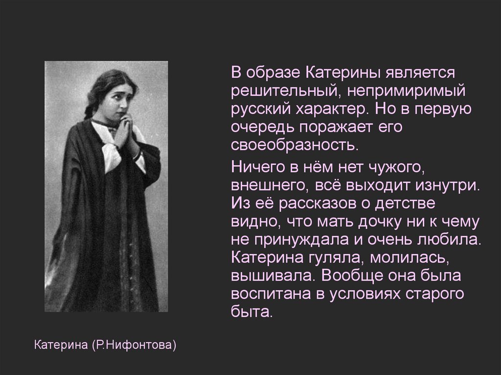 В образе Катерины являетсярешительный, непримиримый