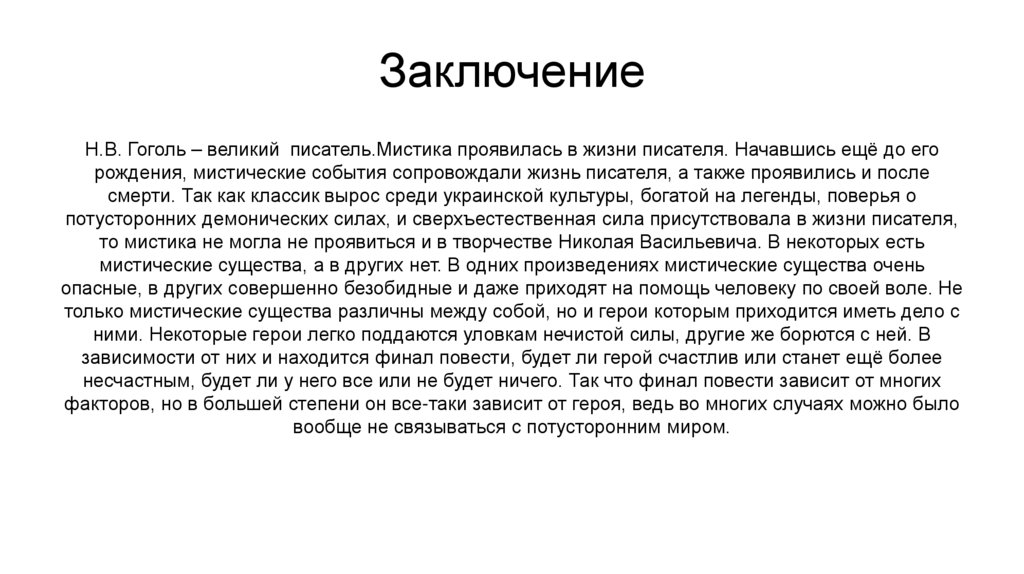 Н.В. Гоголь – великий писатель.Мистика проявилась в жизни писателя. Начавшись ещё до егорождения, мистические события сопровождали жизнь писателя, а также проявились и после