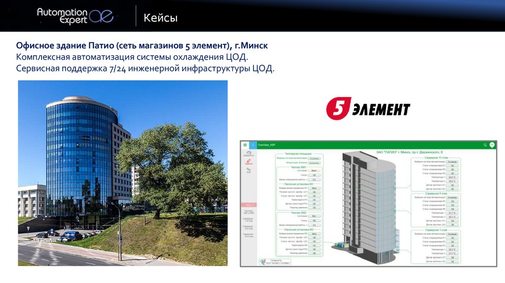 КейсыОфисное здание Патио (сеть магазинов 5 элемент), г.Минск