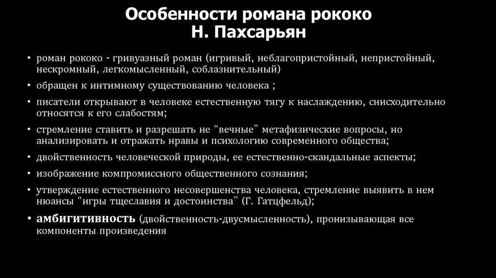 • роман рококо - гривуазный роман (игривый, неблагопристойный, непристойный,нескромный, легкомысленный, соблазнительный)