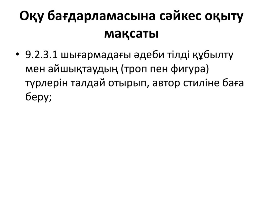2. Оқу бағдарламасына сәйкес оқыту мақсаты
