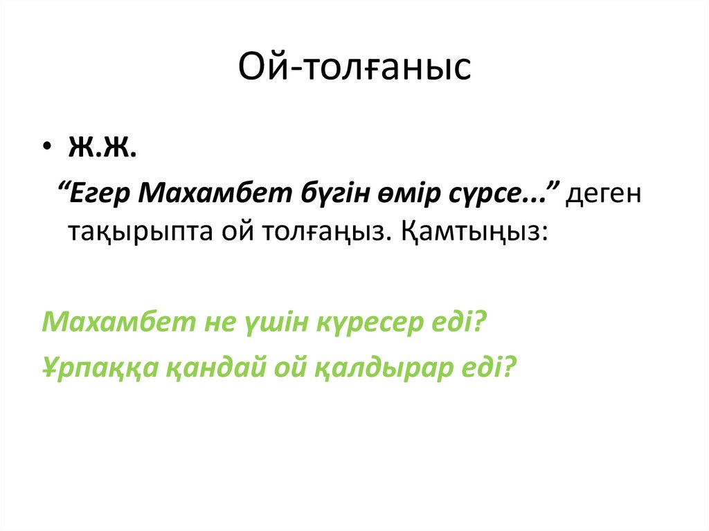 • Ж.Ж.“Егер Махамбет бүгін өмір сүрсе...” деген