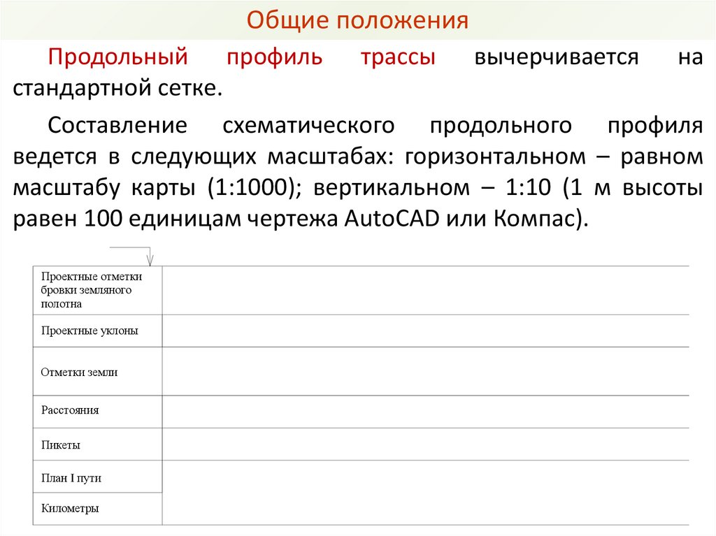 1. Общие положенияПродольный профиль трассы – это развертка проекции