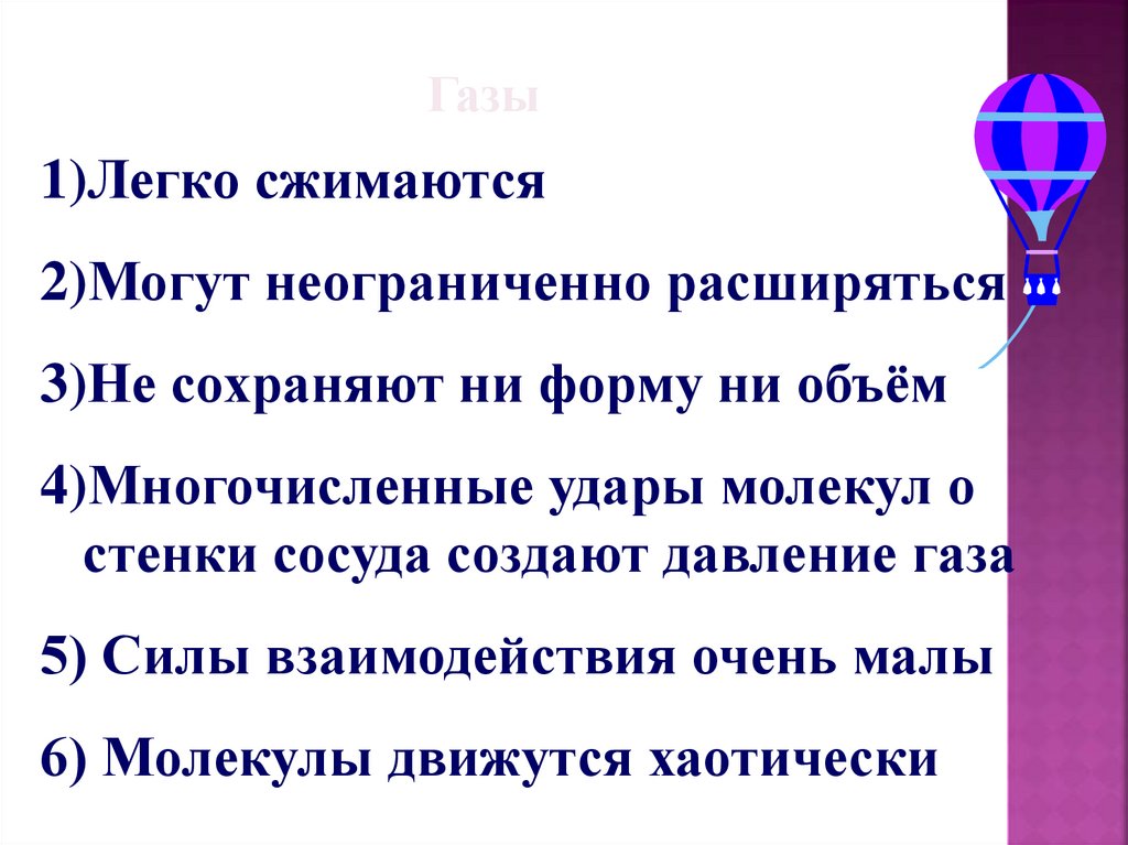6) Молекулы движутся беспорядочно,