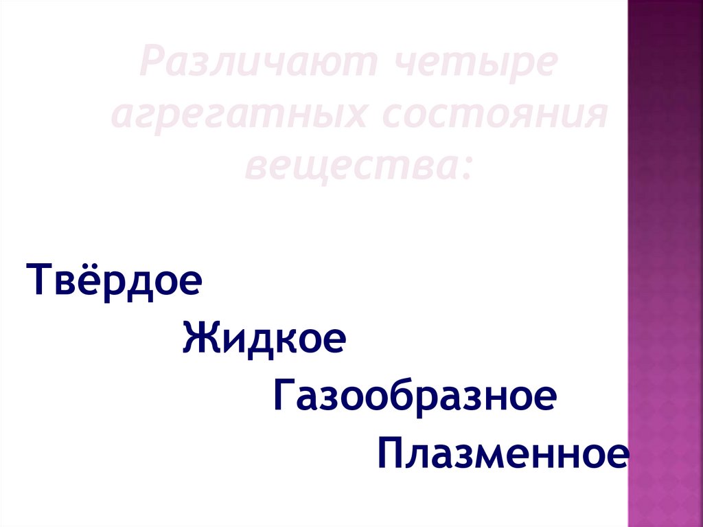 Различают четыре агрегатных состояниявещества: