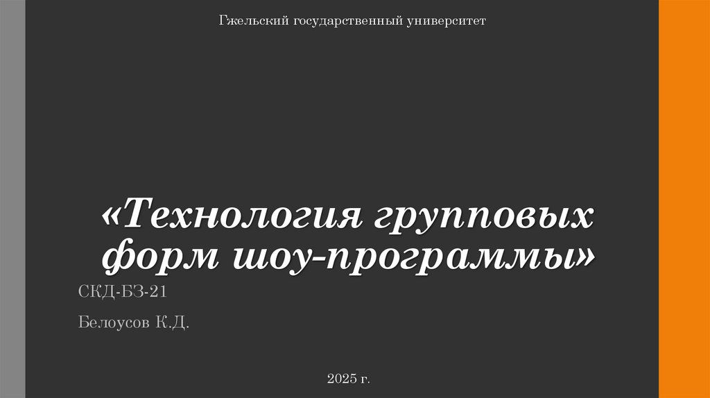 Технология групповых форм шоу