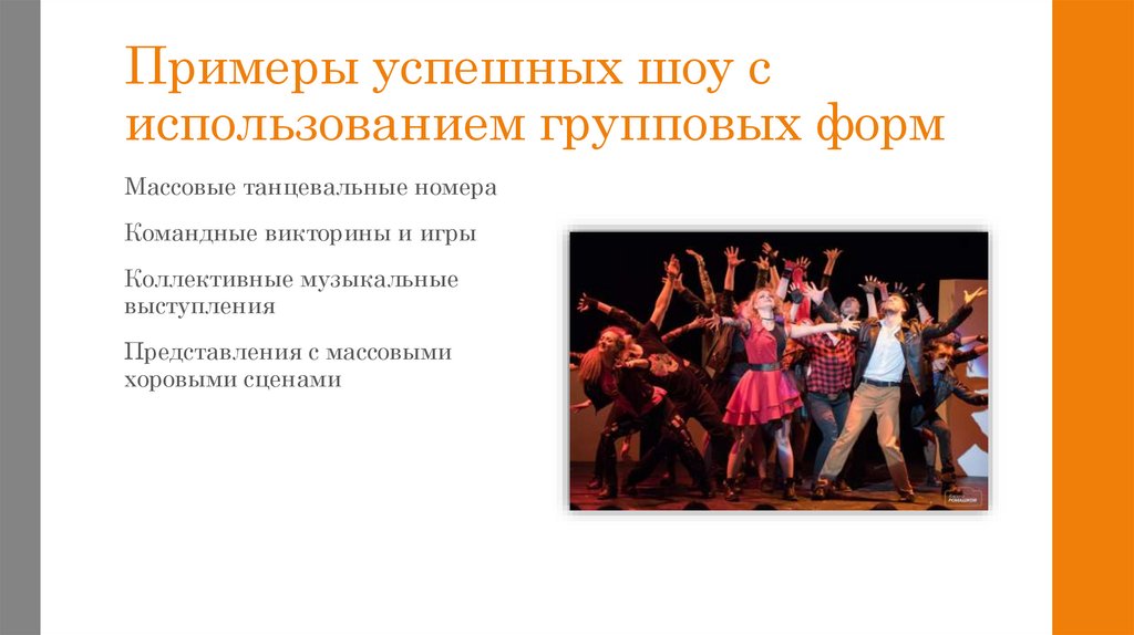 12. Примеры успешных шоу с использованием групповых форм