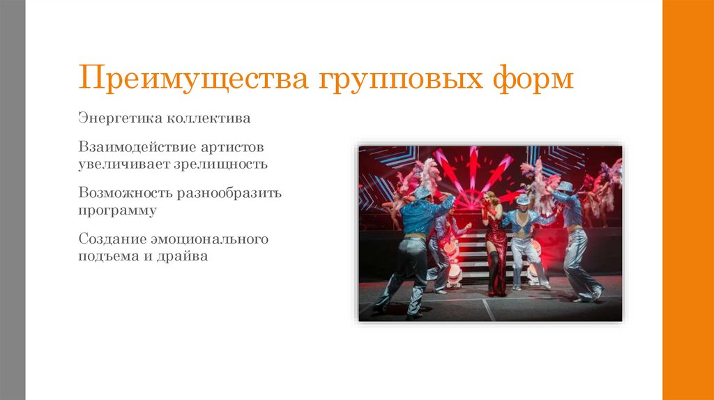 Групповые формы увеличиваютэффект шоу-программы