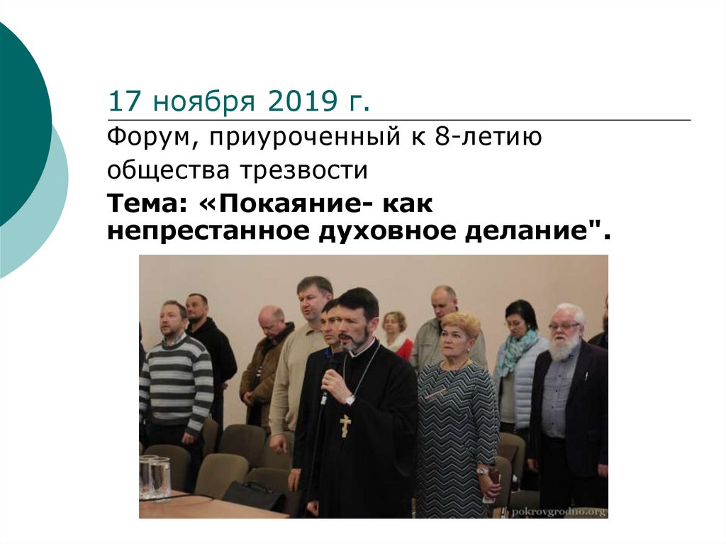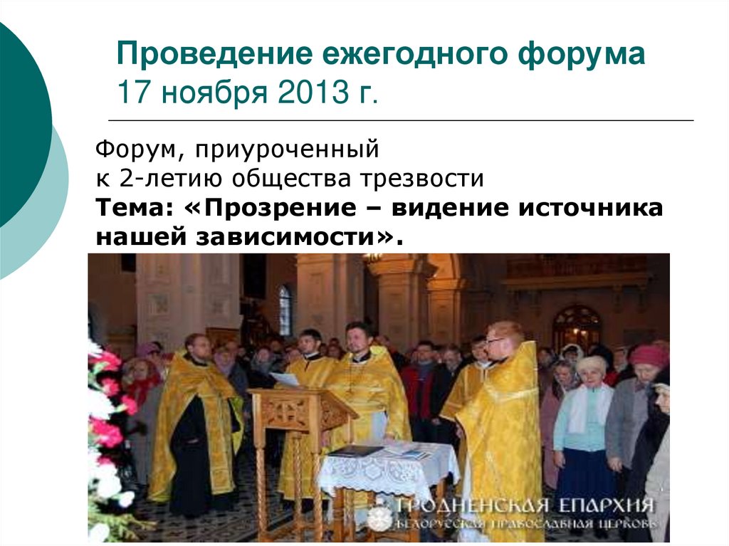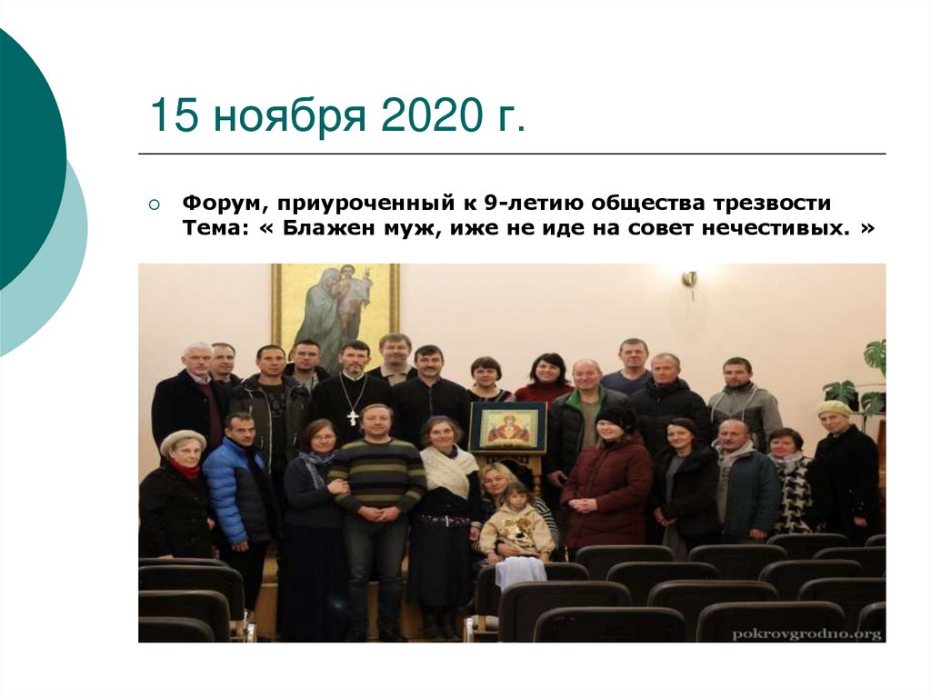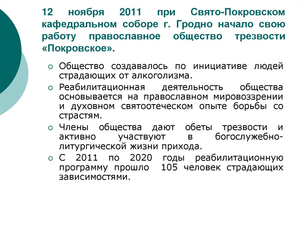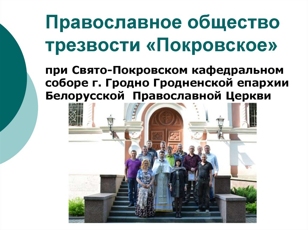 2. 12 ноября 2011 при Свято-Покровском кафедральном соборе г. Гродно начало свою работу православное общество трезвости