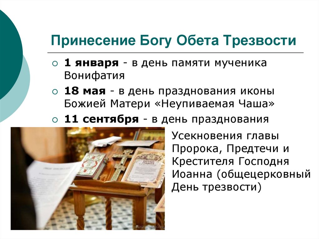 Обет трезвости - один из действенных способов борьбы с алкоголизмом,когда человек, давая Богу, обещание трезвой жизни, получает от него