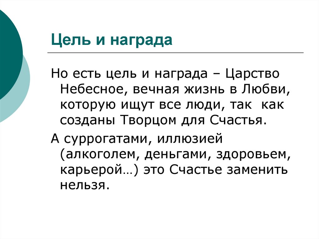 Но есть цель и награда – ЦарствоНебесное, вечная жизнь в Любви,