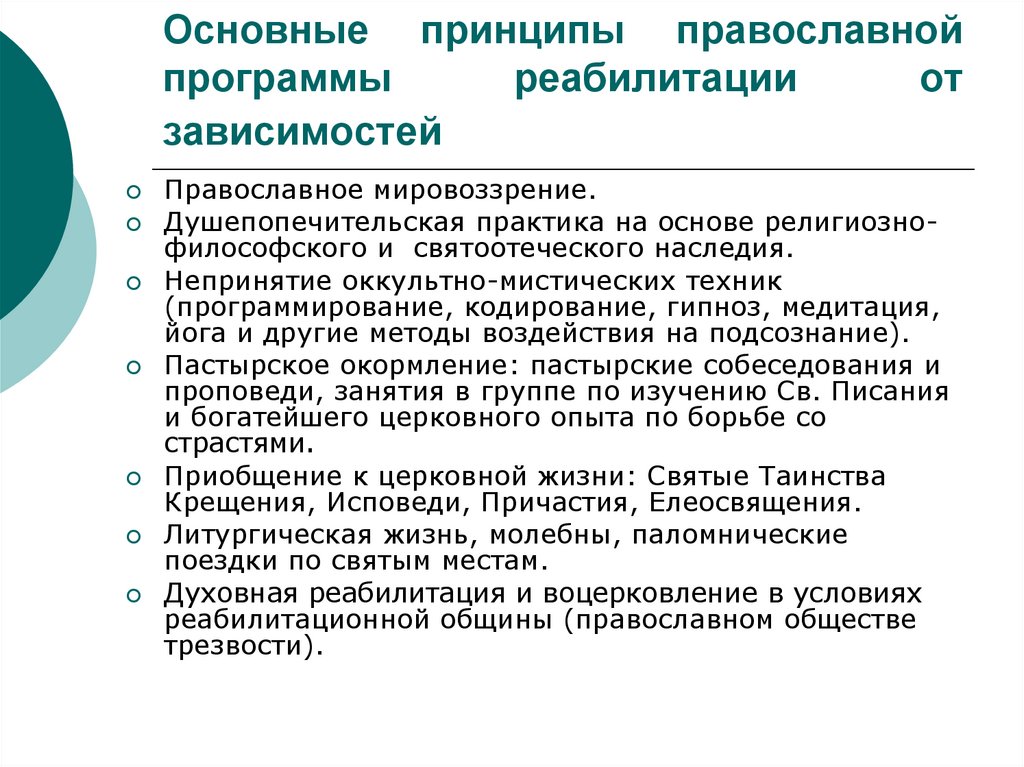 6. Основные принципы православной программы реабилитации от зависимостей