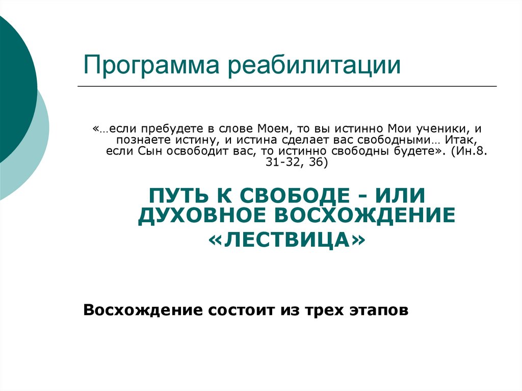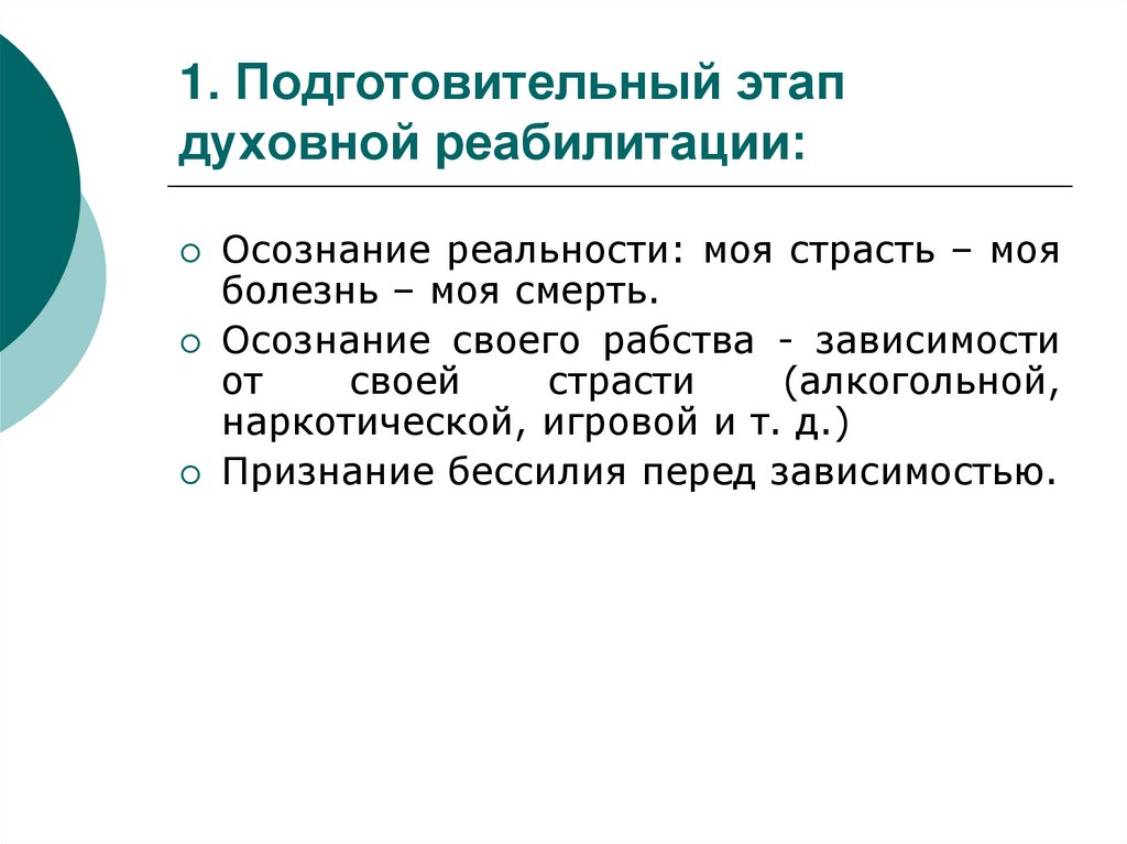 8. 1. Подготовительный этап духовной реабилитации: