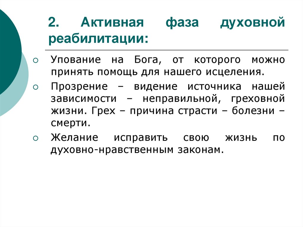 9. 2. Активная фаза духовной реабилитации: