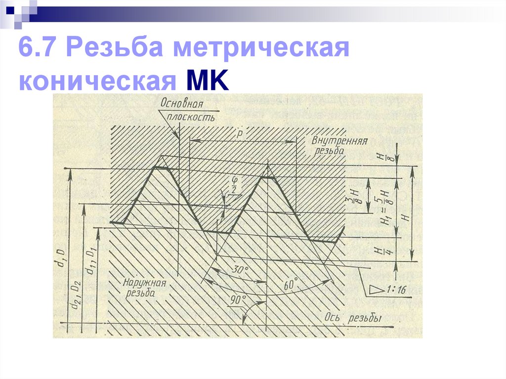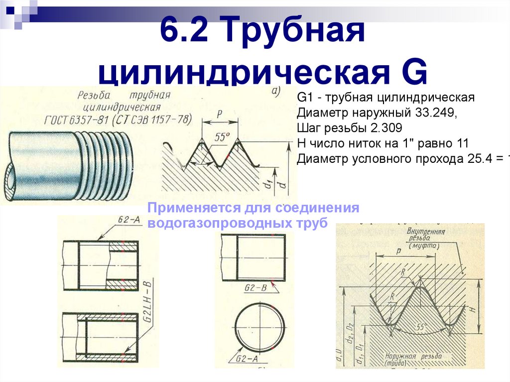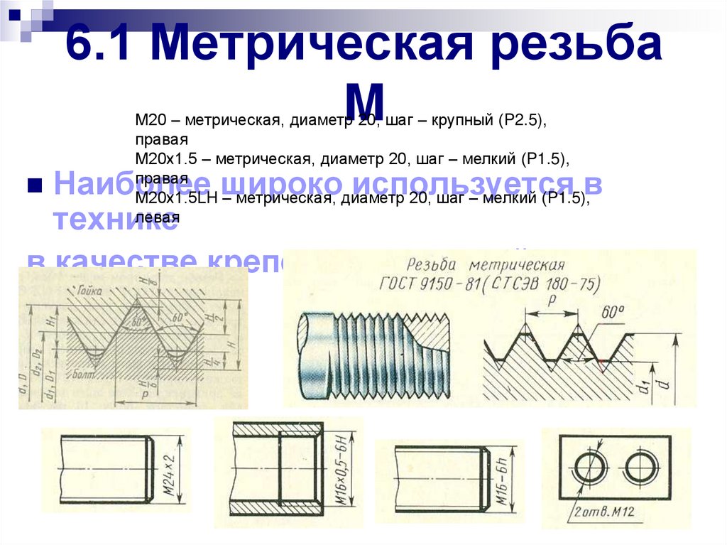 6.1 Метрическая M6.2 Трубная цилиндрическая G