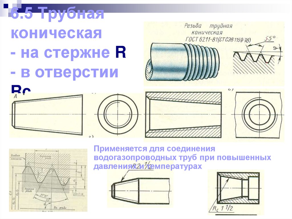 17. 6.5 Трубная коническая - на стержне R - в отверстии Rc