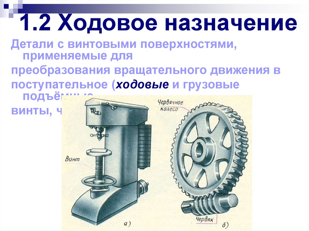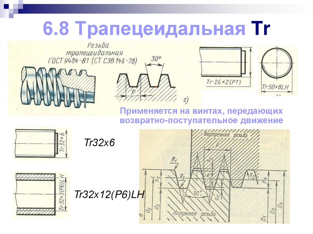 Применяется на винтах, передающихвозвратно-поступательное движение