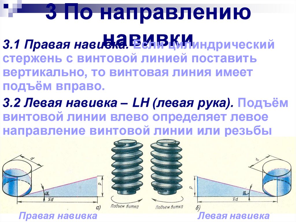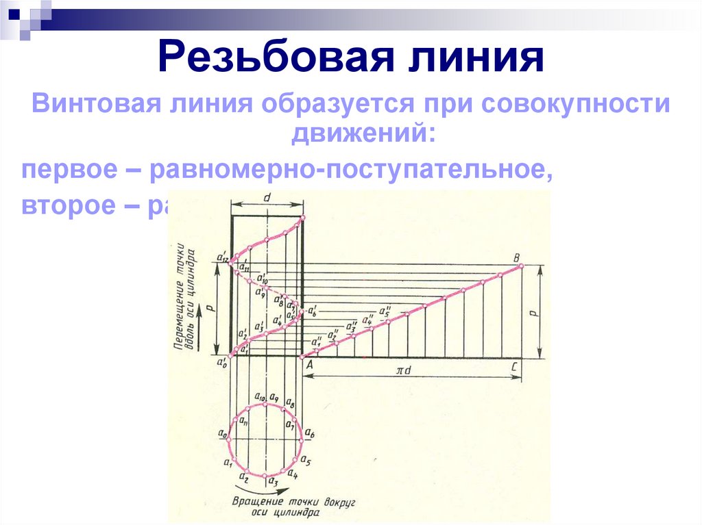 С торцевой поверхности начинает своёвращение резьбовая (винтовая) линия. Их