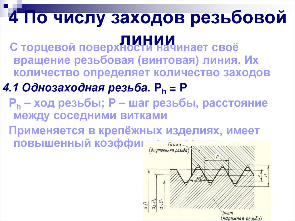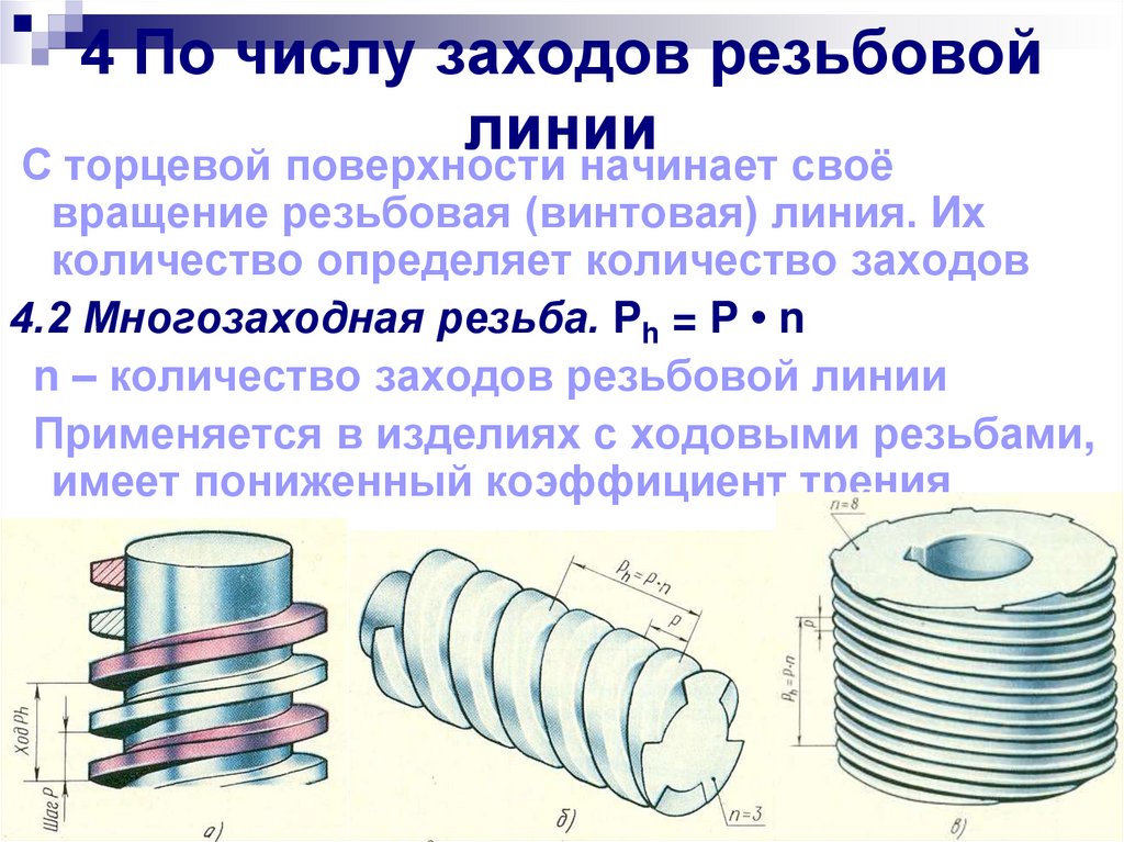 Ph – ход резьбы; P – шаг резьбы, расстояние