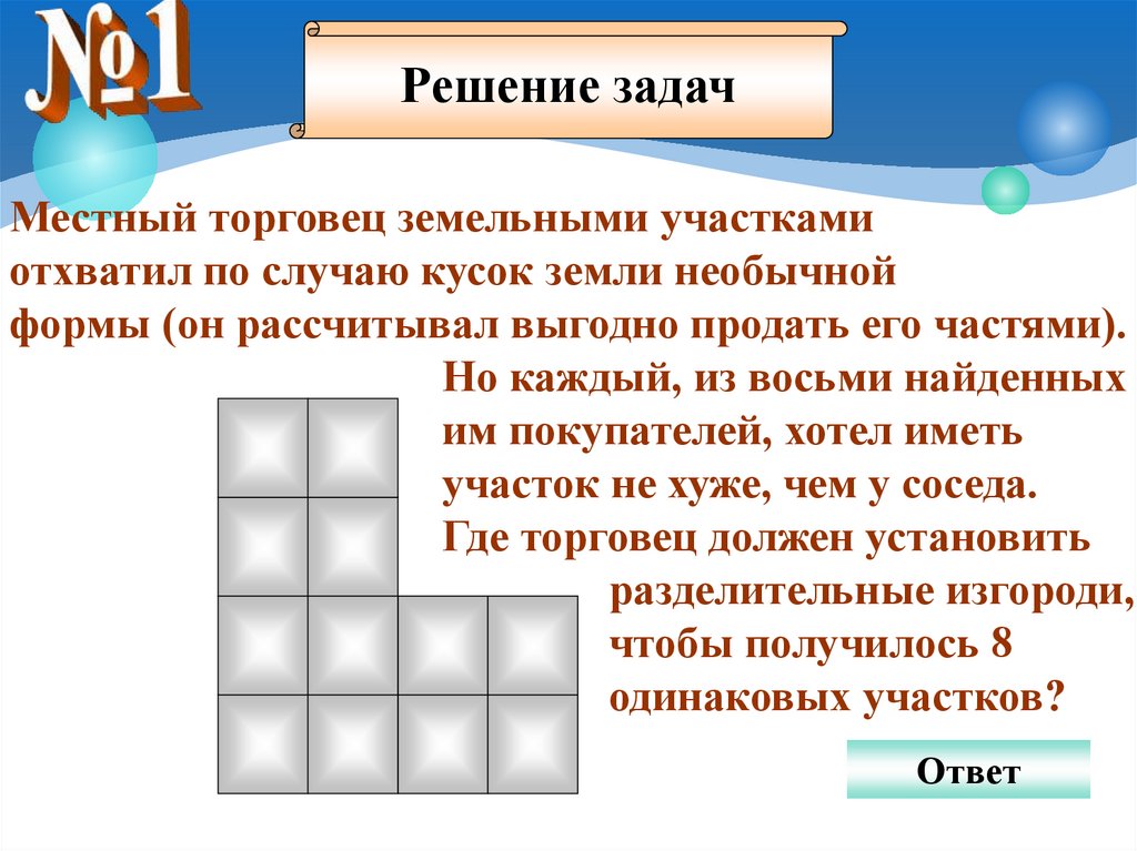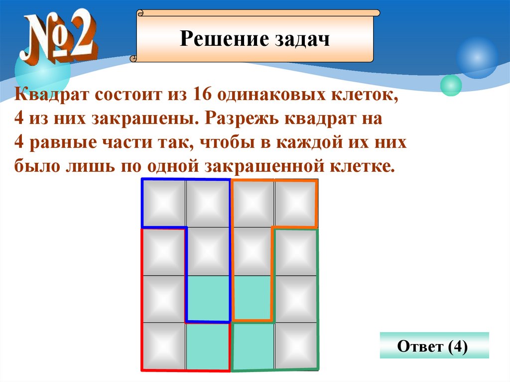 Решение задачКвадрат состоит из 16 одинаковых клеток,