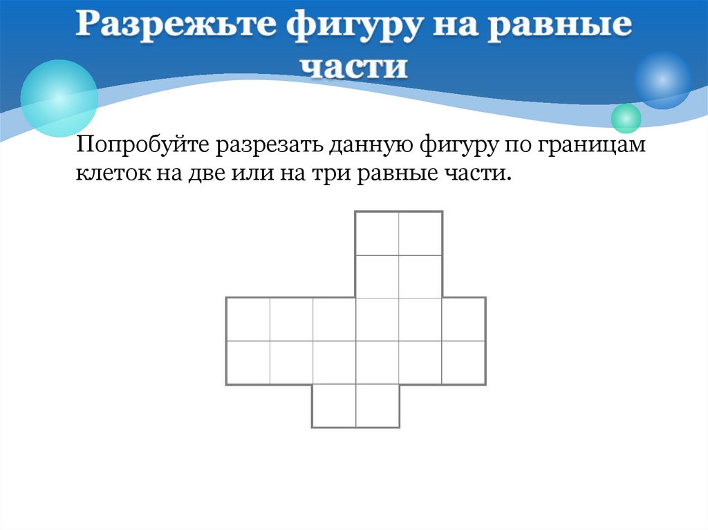 Попробуйте разрезать данную фигуру по границамклеток на две или на три равные части.