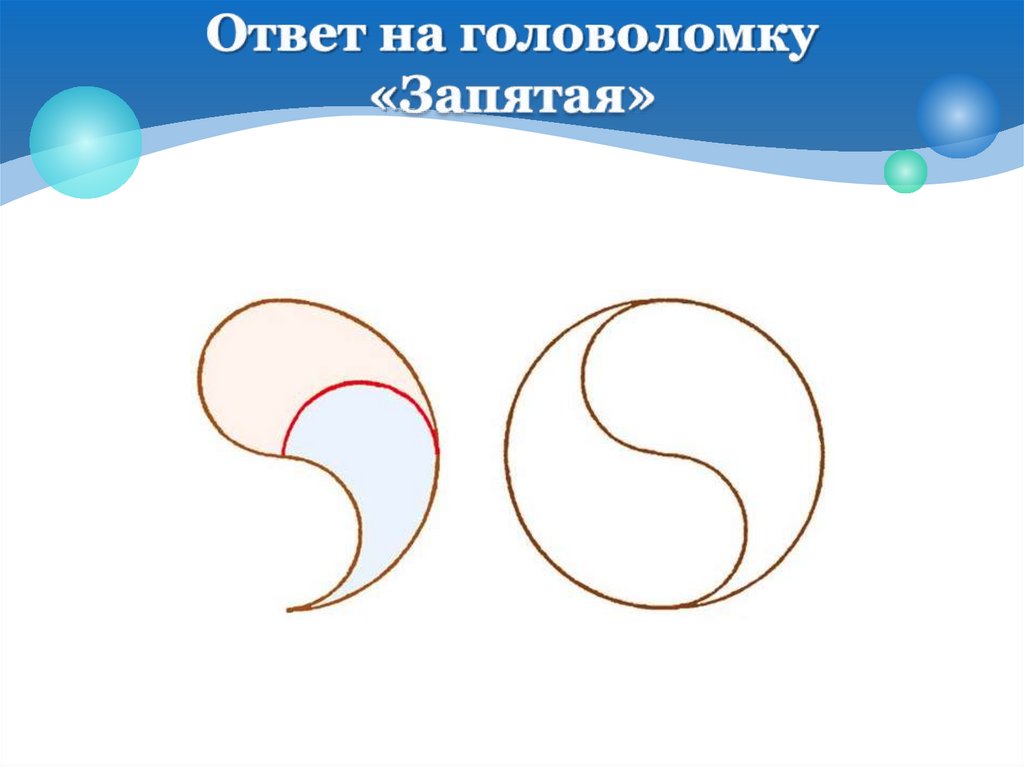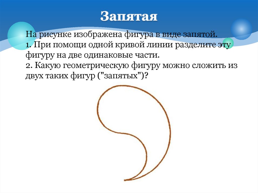 На рисунке изображена фигура в виде запятой.1. При помощи одной кривой линии разделите эту