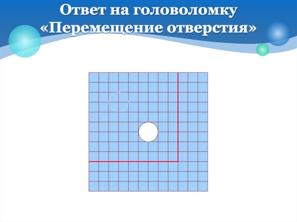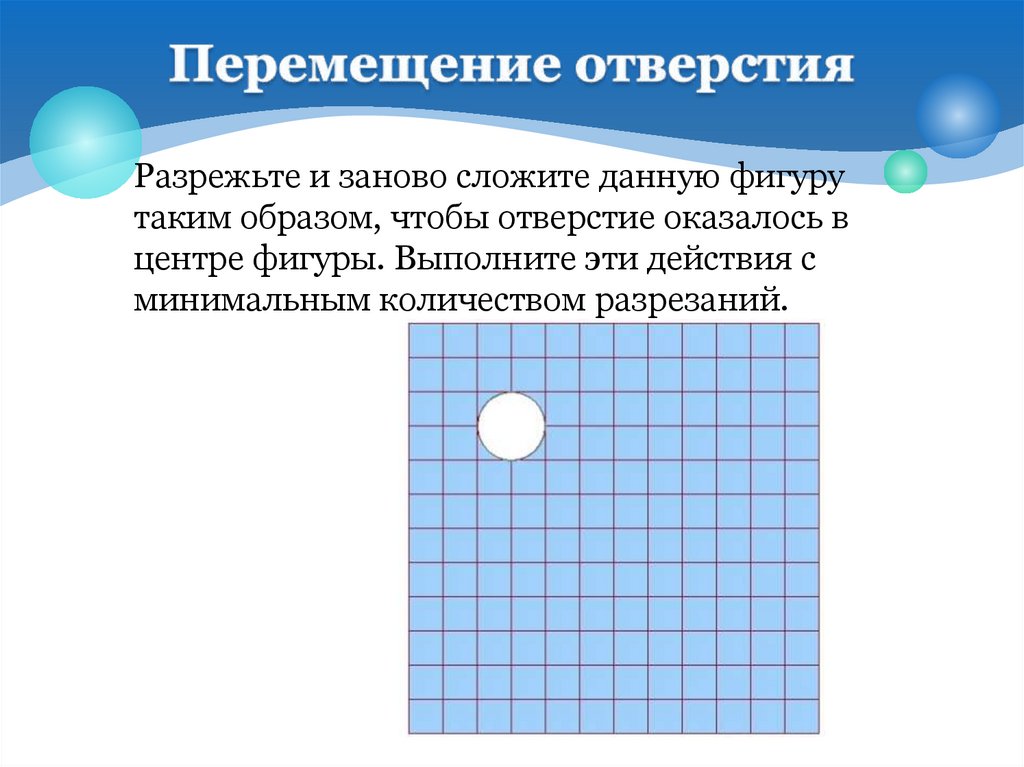 Разрежьте и заново сложите данную фигурутаким образом, чтобы отверстие оказалось в