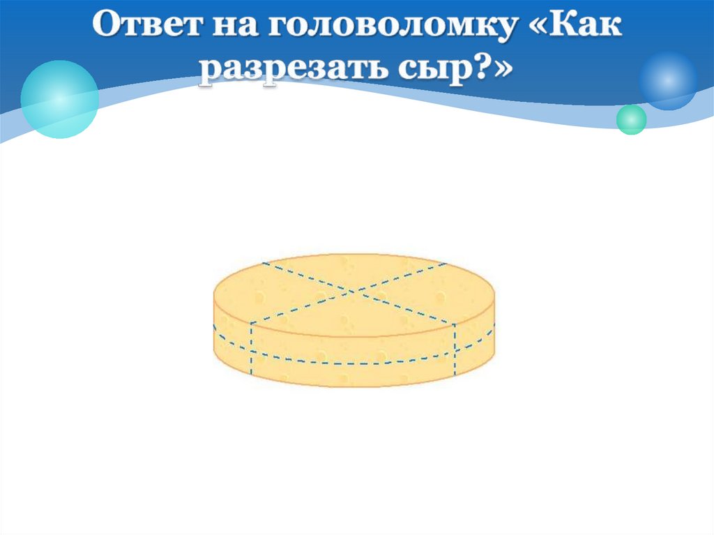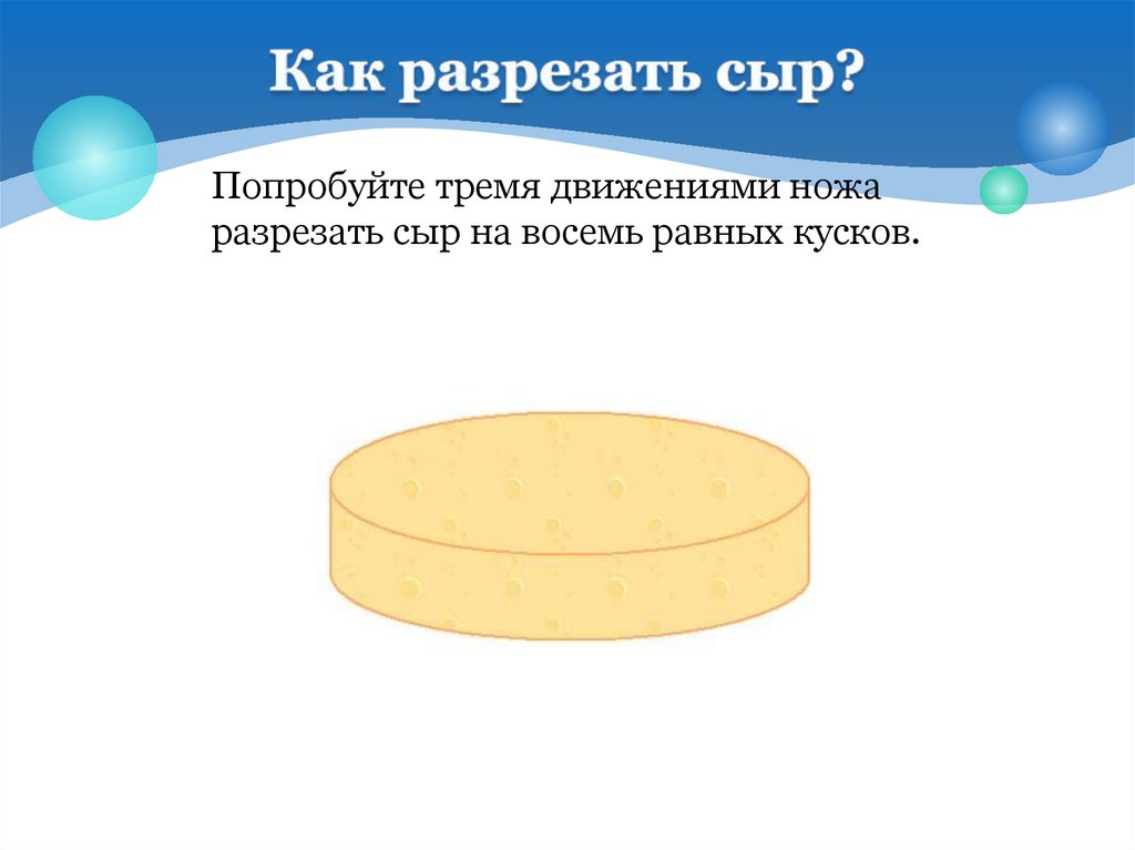 Попробуйте тремя движениями ножаразрезать сыр на восемь равных кусков.